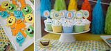 I used strips of paper that were 12" by 2" and made quarter inch folds. After the paper is accordion folded, glue the ends together to make a circle. Then flip the circle in to make it flat--this part is a little tricky. Put a dot of glue on the center to hold it in place and add a party circle (there are a bunch available in our Etsy shop!) and add a lollipop stick to the back. Ta da!